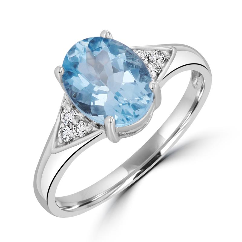 7X9 OVAL AQUAMARINE WITH ROUND DIAMOND ON EACH SIDE RING