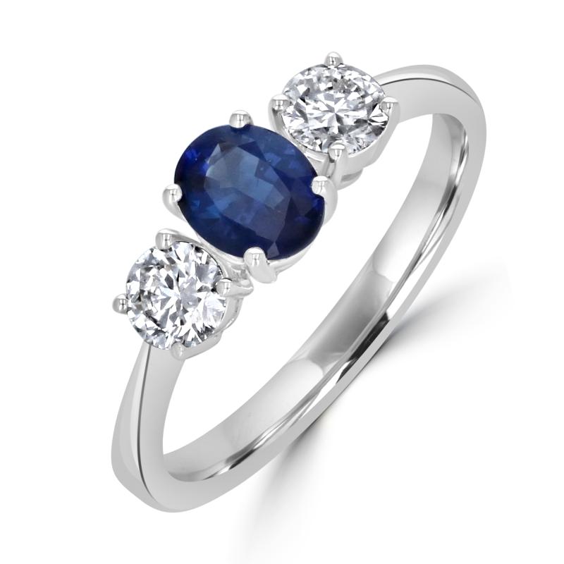 OVAL SAPPHIRE & ONE DIAMOND EACH SIDE RING